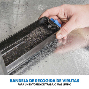 - Recipiente para virutas que mantiene limpio y seguro el área de trabajo.