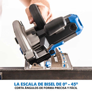 - Una de las sierras circulares más ligeras del mercado, con un peso de solo 5.2 kg, convierte el corte pesado en una tarea más rápida, fácil y segura.