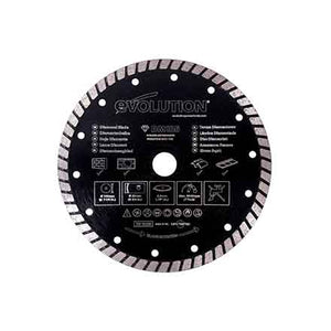 Disco de diamante segmentado Evolution de 185 mm para corte de mampostería: corta con precisión y potencia piedra natural, hormigón y mucho más. Diseñada para maximizar tu productividad y ofrecer cortes precisos, este disco premium es la herramienta perfecta para trabajos exigentes. Compatible con sierras de inglete Evolution, para que lleves tu rendimiento al siguiente nivel.