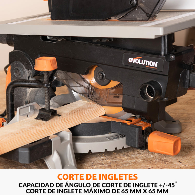 - Compatibilidad universal: Compatible con soportes para sierras ingletadoras y accesorios Evolution.
