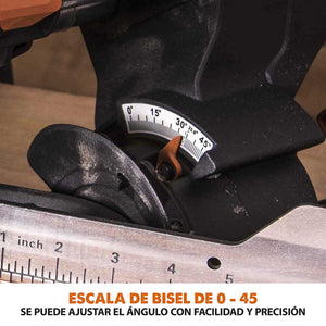 - Realiza cortes precisos con un bisel ajustable de 0° a 45° y ángulos de inglete de 0°, 15°, 22,5°, 30° y 45° a izquierda y derecha.