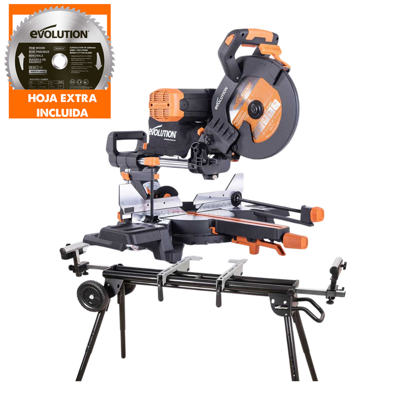 Ahorra a lo grande con este Pack Evolution, que incluye la sierra ingletadora telescópica de doble bisel R255SMS-DB+ (con hoja multi-materiales, bolsa para polvo y mordazas de sujeción) junto con un soporte para ingletadora. Mejora tu espacio de trabajo con una relación calidad-precio inigualable.