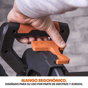 - El soporte para sierra ingletadora Evolution permite cortes repetitivos con precisión en materiales largos y anchos.