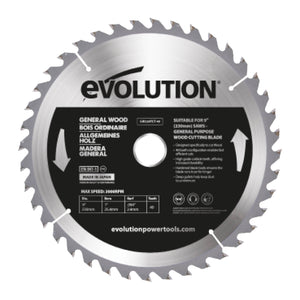 Hoja TCT para Ingletadora y Sierra de Mesa Evolution de 255 mm 40 Dientes, Agujero de 25,4 mm para Madera (GRATIS))